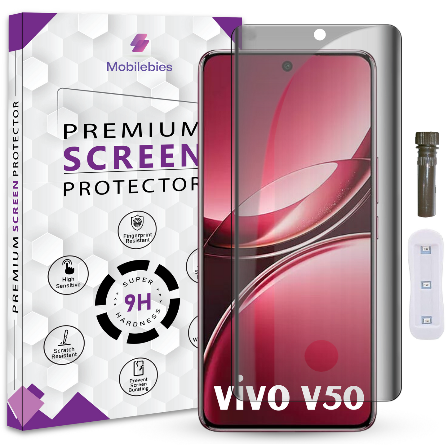 Protect your phone in style with the Mobilebies Advanced HD+ UV Privacy Screen Protector for Vivo V50 – specially designed to fit your device like a glove while offering top-tier privacy and protection. Whether you’re using your Vivo V50, our tempered glass for Vivo V50 ensures that your screen stays safe from scratches, cracks, and curious eyes.